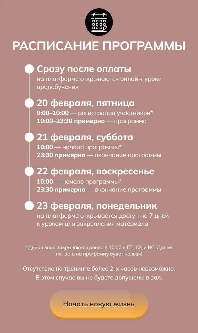 • 3 дня глубокой проработки денежного мышления и личных отношений